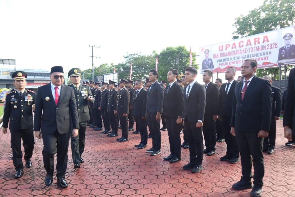 Bebaca.id, Tenggarong – Peringatan Hari Bhayangkara ke-79 tahun 2025 di Kabupaten Kutai Kartanegara (Kukar) menjadi ajang penting untuk merefleksikan perjalanan panjang pengabdian Kepolisian Republik Indonesia, khususnya jajaran Polres Kukar. Digelar di halaman Mapolres Kukar pada Selasa pagi (1/7/2025), upacara berlangsung khidmat dengan dipimpin langsung oleh Bupati Kukar, dr. Aulia Rahman Basri.