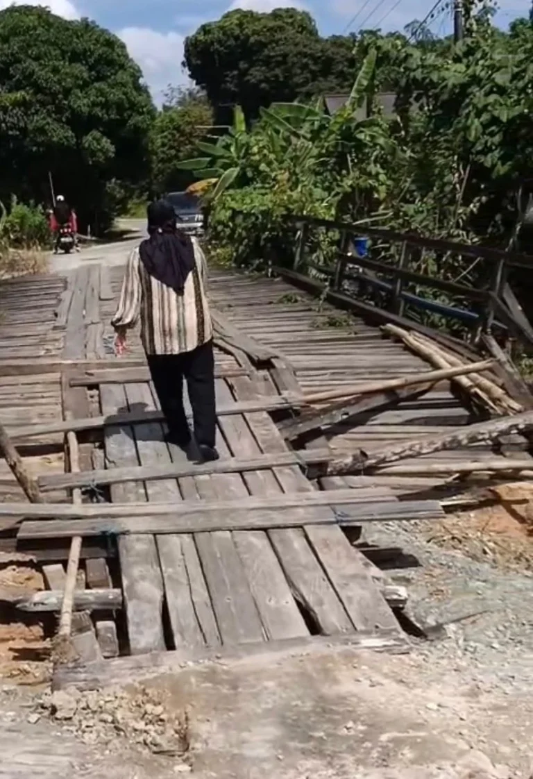 Akses Utama Warga Desa Sebuntal Terancam, Jembatan Kayu Rusak Parah