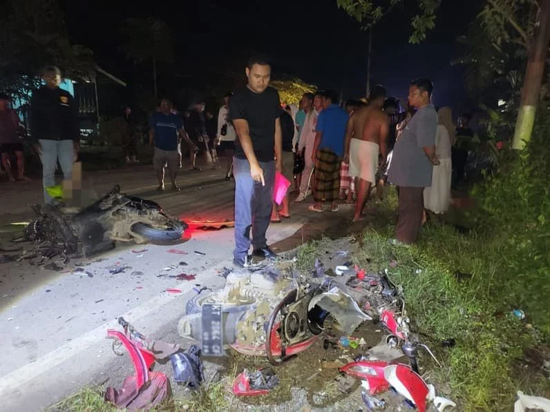 Kecelakaan tersebut melibatkan sepeda motor Honda Scoopy dan Yamaha Mio J yang datang dari arah berlawanan. Benturan keras di bagian depan kendaraan menyebabkan kedua pengendara mengalami luka berat di kepala.