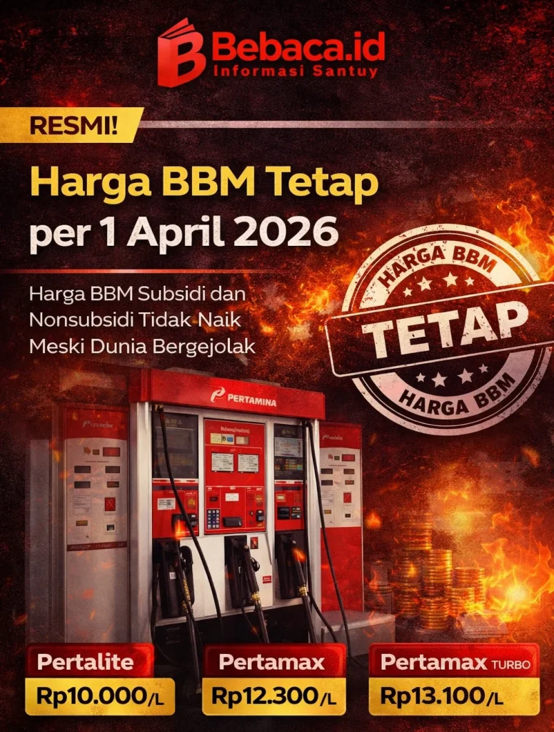 Bebaca.id, Jakarta – Pemerintah melalui PT Pertamina (Persero) memastikan tidak ada kenaikan harga bahan bakar minyak (BBM) per 1 April 2026. Kebijakan ini berlaku untuk BBM subsidi maupun nonsubsidi di seluruh Indonesia.